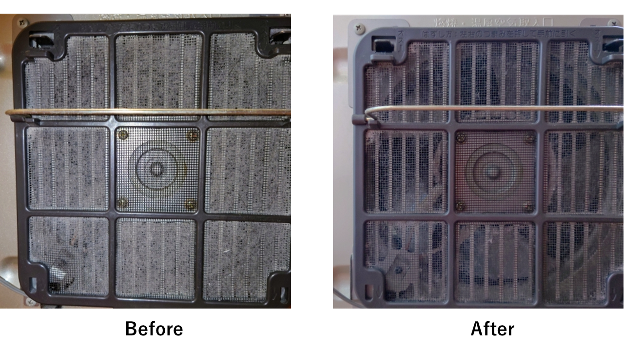 ファンヒーターの吸気フィルターには思いのほかホコリが溜まり、これが暖房効率を下げて余計な灯油の消費を招きます。